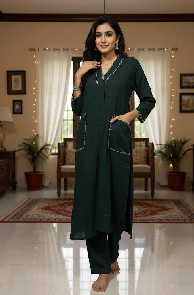 Grace meets simplicity in our Midnight Bloom Co-ord Set, tailored from luxurious Mal cotton for all-day ease and elegance. This three-piece ensemble includes a flattering V-neck kurta with princess panel detailing, matching pants, and a lightweight dupatta. The deep midnight blue hue makes it a perfect choice for festive evenings, office wear, or elegant casual outings.